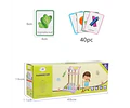 Además de enseñarle a su hijo a limpiar, usted le está enseñando a clasificar la basura. Cada contenedor tiene un color, y las 40 tarjetas deben colocarse en el contenedor correspondiente al color.